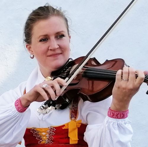 Knapp Maria Pettersson spelar på kursen och har rötter i Boda. Hon har Bodamusiken i levande tradition och spelar i Boda spelmanslag.
